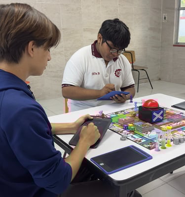 Es un juego de mesa que enseña a resolver problemas con ecuaciones lineales.